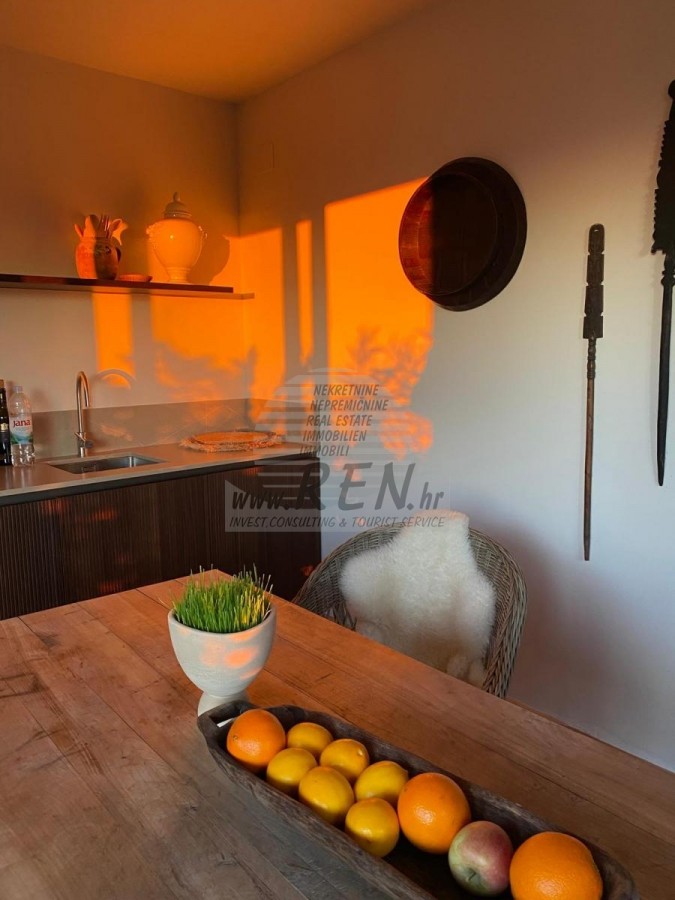 Una lussuosa casa in pietra con una delle viste più belle dell'Istria si trova in un ambiente piccolo e tranquillo vicino al centro della città di Buie. La proprietà è stata adattata secondo gli standard ecologici, esclusivamente con materiali naturali come pietra, legno, il giardino è decorato esclusivamente con piante domestiche, aromatiche come lavanda, rosmarino, salvia, ulivo e fico che emanano odori incredibili durante l'intera giornata . La casa in pietra di oltre 160 anni è stata completamente ristrutturata con grande attenzione ai dettagli e da allora combina il comfort abitativo moderno con elementi storici, che conferiscono alla casa un fascino particolare. La casa ha 3 piani su 170m2 con un giardino di 85m2. In totale ci sono 3 camere da letto, 3 bagni, WC, una cucina in muratura con una lastra di pietra casuale ed elettrodomestici di qualità, e un soggiorno con camino. I pavimenti sono in legno di rovere e le finestre sono a doppio strato con sbarre di legno (legno massiccio)..